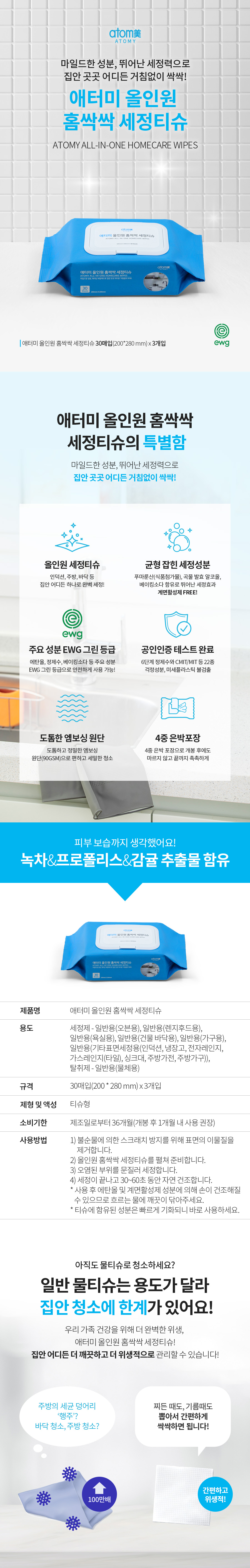애터미 올인원 홈싹싹 세정티슈(30매입*3개입)